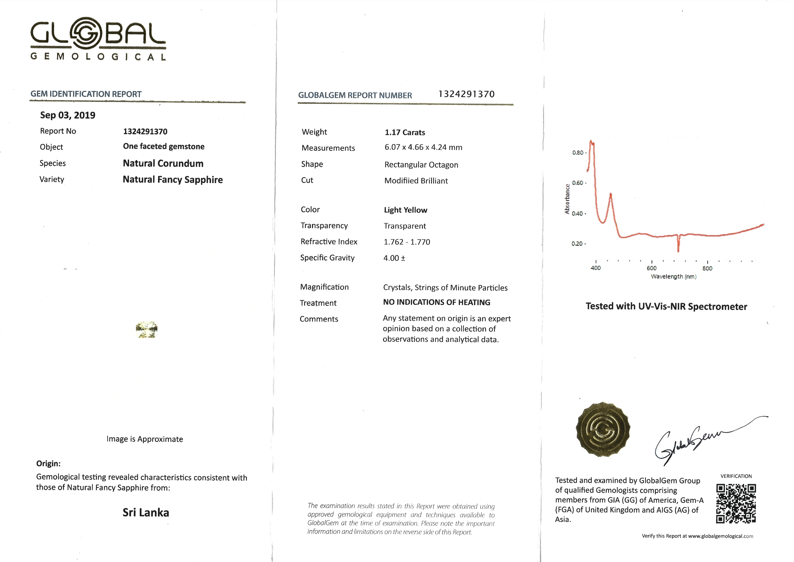 | Identification Report | Global Gemological Laboratory |
