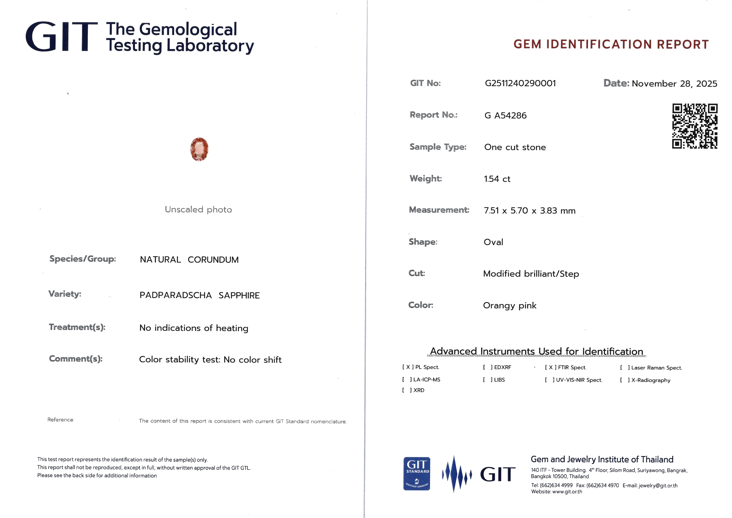 | Identification Report | Gem and Jewelry Institute of Thailand |